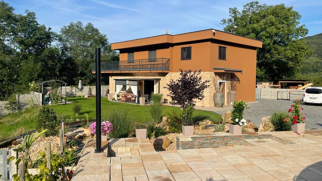 Dům o užitné ploše 274 m2 stojí na pozemku o velikosti více než 2 300 m2. Z pozemku máte nádherný výhled do klidného okolí, např. na blízkou řeku Labe. Tento moderní dům disponuje krytým a vyhřívaným bazénem, vlastním ovocným sadem anebo také kompletním bezpečnostním systémem, který je zavedený v celém domě.