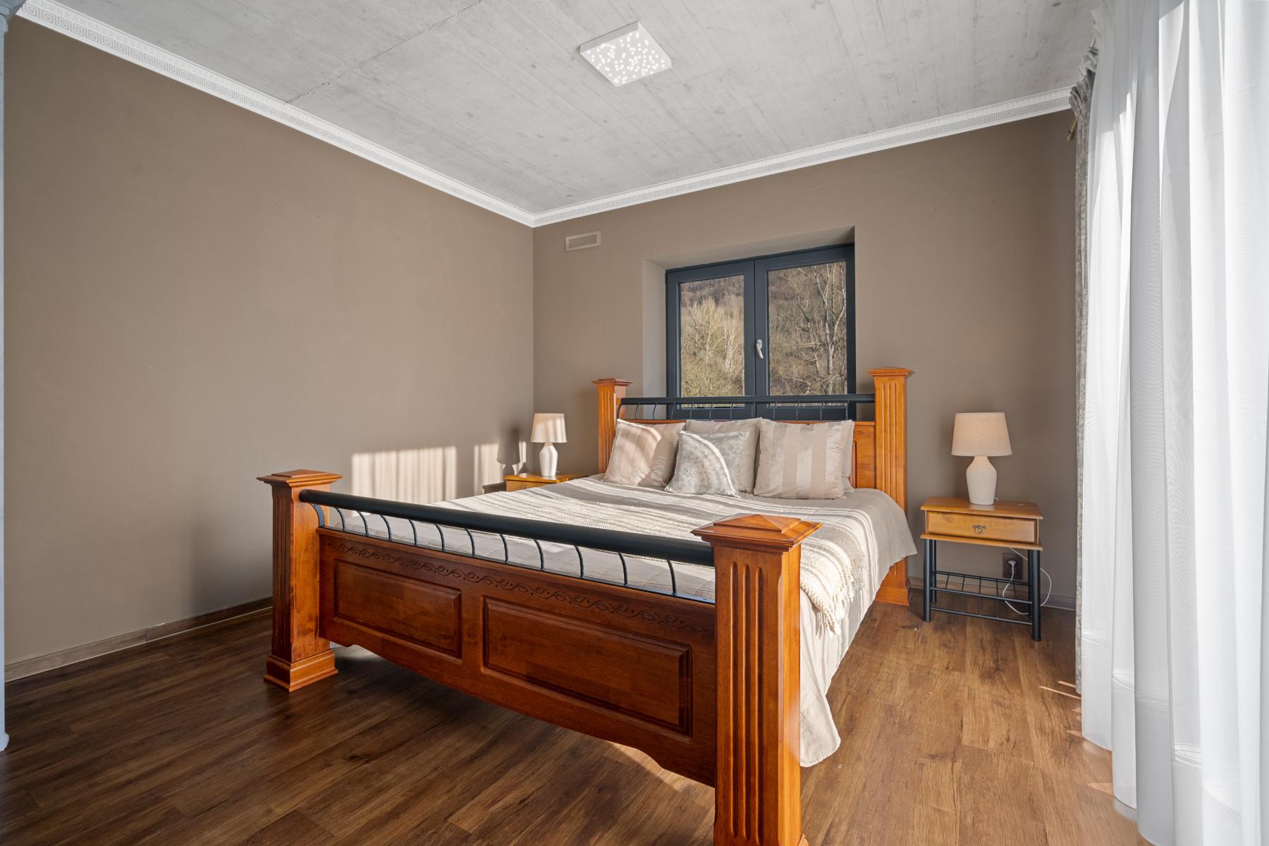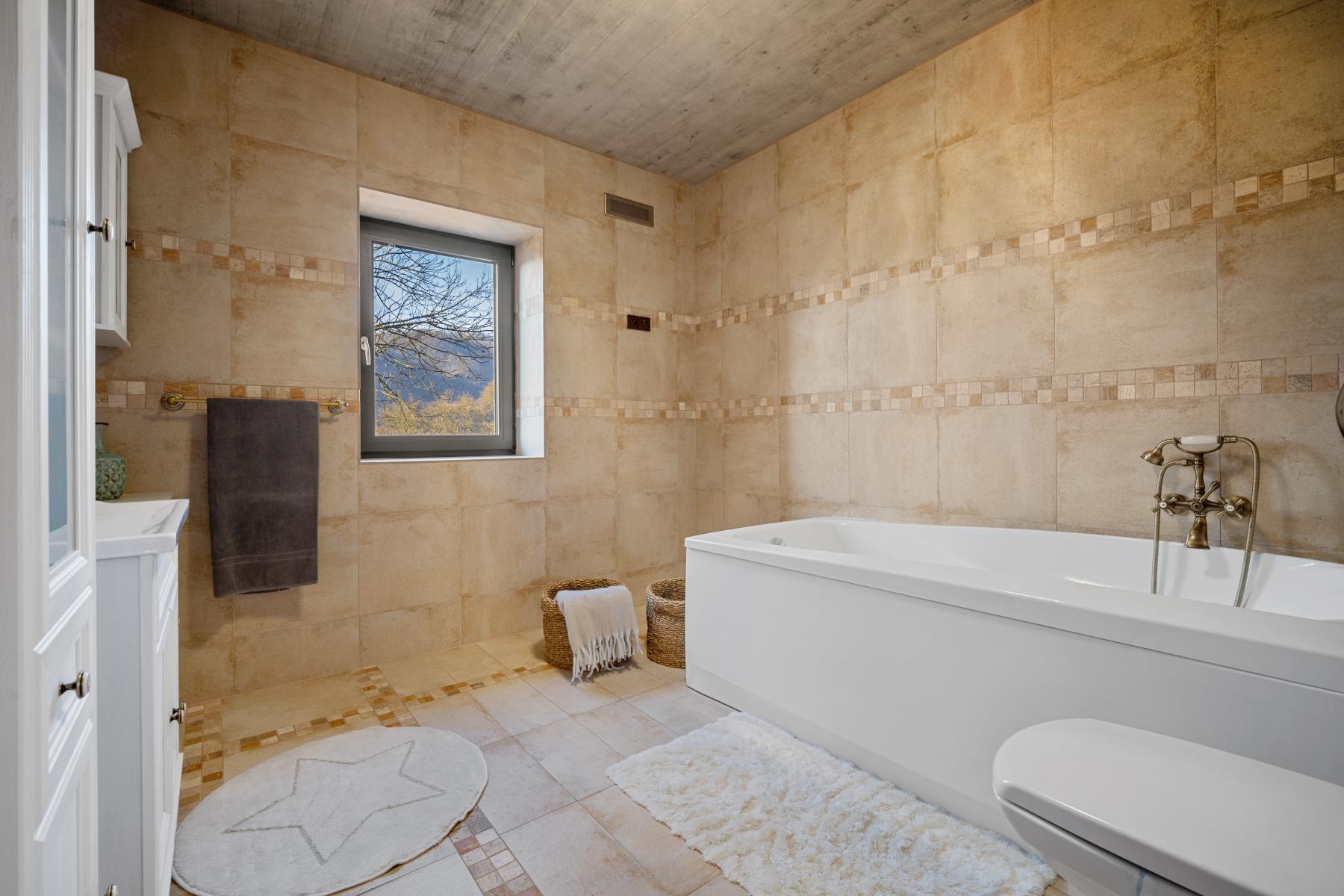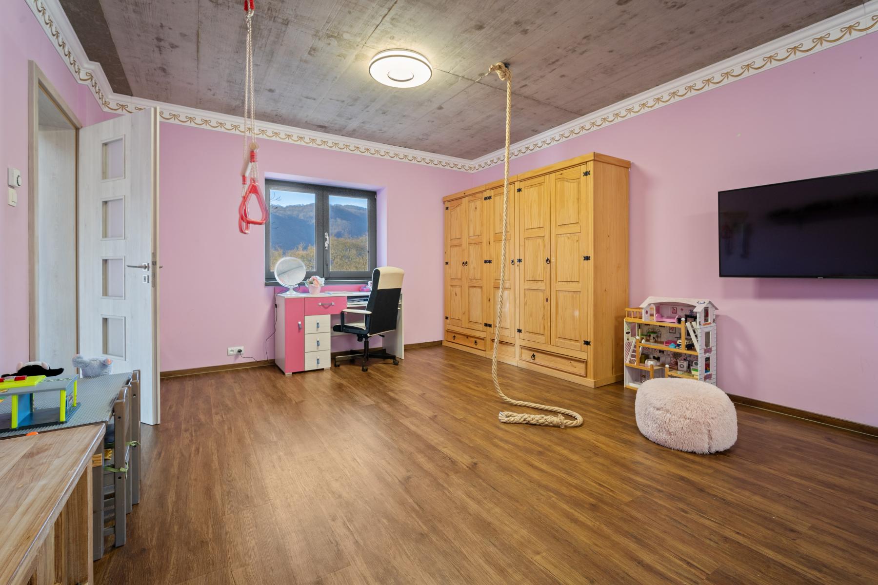 Při vstupu do objektu naleznete prostorný kuchyňský kout s jídelnou, který je propojený také s velkým obývacím pokojem. Dále naleznete v přízemí také technickou místnost, samostatné WC a krásnou koupelnu s další toaletou, případně také garáž, která je v současnosti využívána spíše jako skladová místnost. V horním patře objektu naleznete několik samostatných místností, které v současnosti slouží jako ložnice, pokoje pro hosty a také jako dětské pokoje. V patře dále najdete další dvě koupelny s toaletou anebo také vstup na prostornou terasu, ze které máte skvělý výhled do klidného okolí. Objekt je částečně také podsklepený.