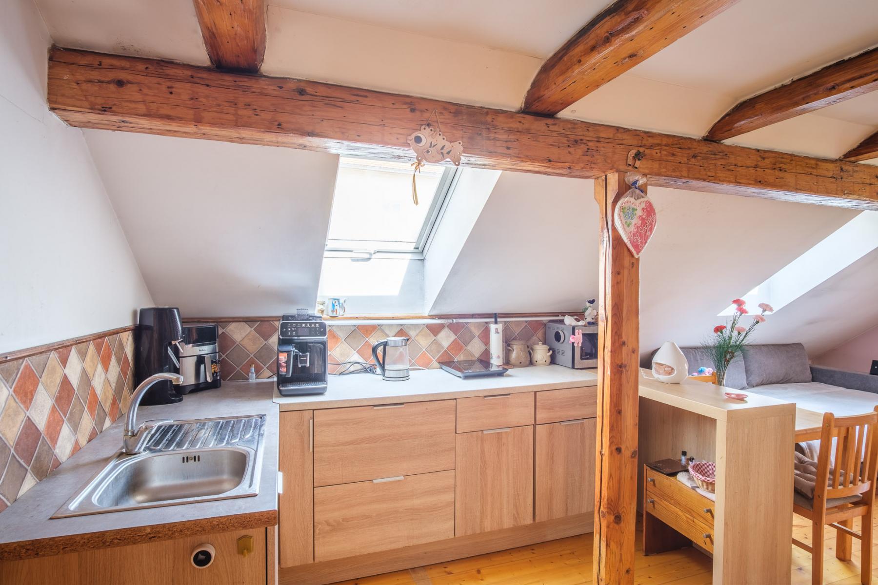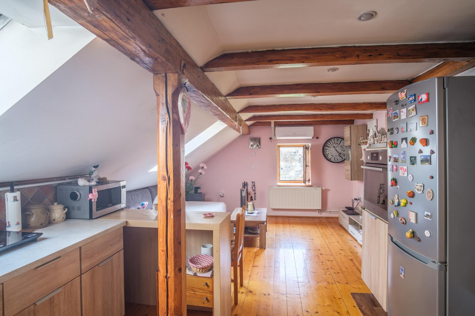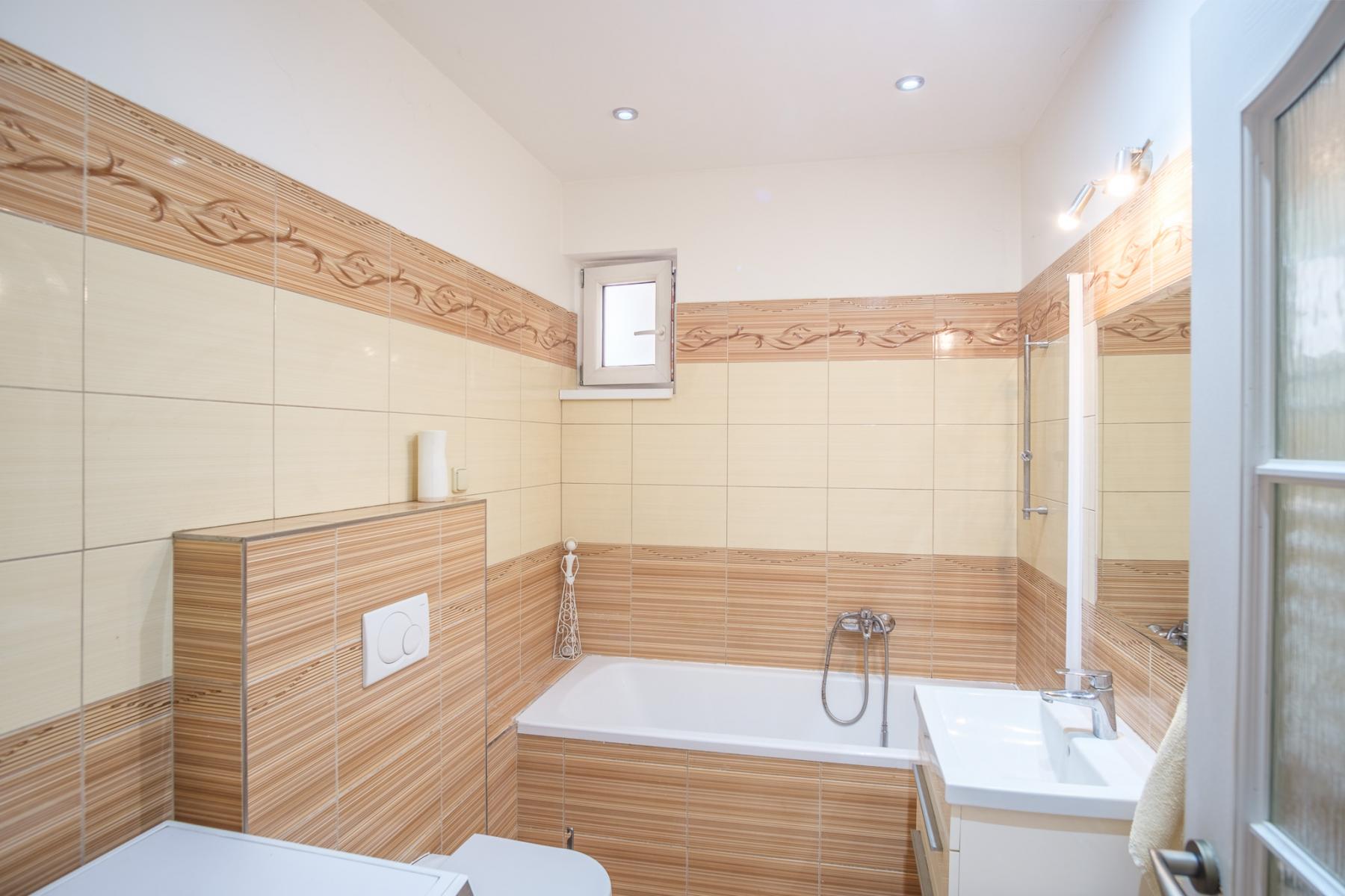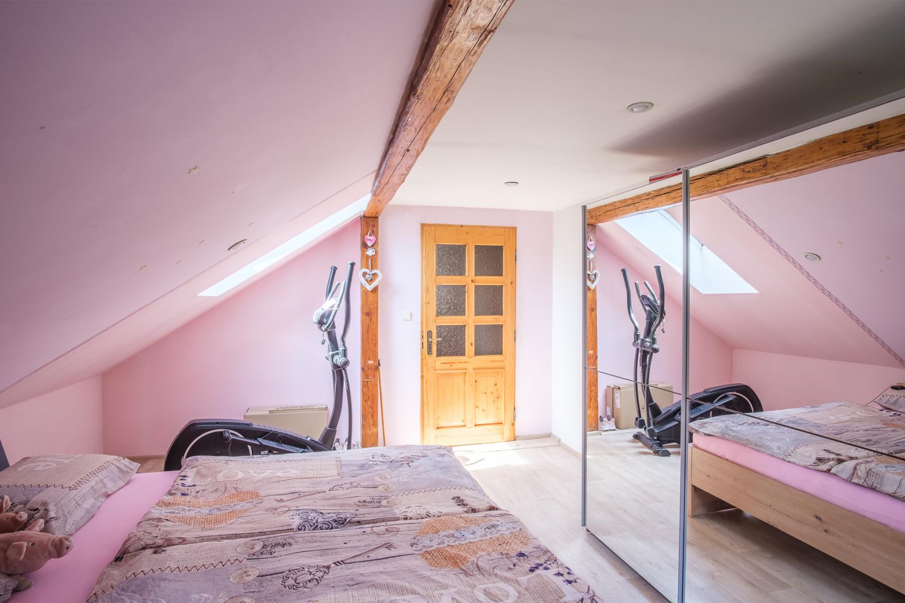 V rodinném domě o užitné ploše 245 m2 najdete celkem 3 koupelny. Dům je skvěle řešený a je plně vybaven. Jednotlivé interiérové detaily jsou promyšlené do posledního detailu a odpovídají historické lokalitě. Zároveň je v rodinném domě nyní kompletně zabydlené podkroví, které je navíc plně klimatizované. Zajímavými interiérovými detaily jsou především původní dřevěné trámy v podkrovní části.